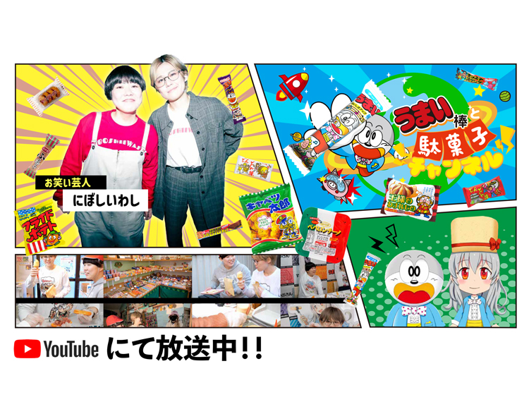 SNS企画SNSを活用しうまい棒公式twitterのほか、自社キャラクター、オリジナル商品のSNSアカウントの運営、新商品の情報発信もSNSからリアルタイムで配信。 やおきん公式『うまい棒と駄菓子チャンネル』の運営を行っています。